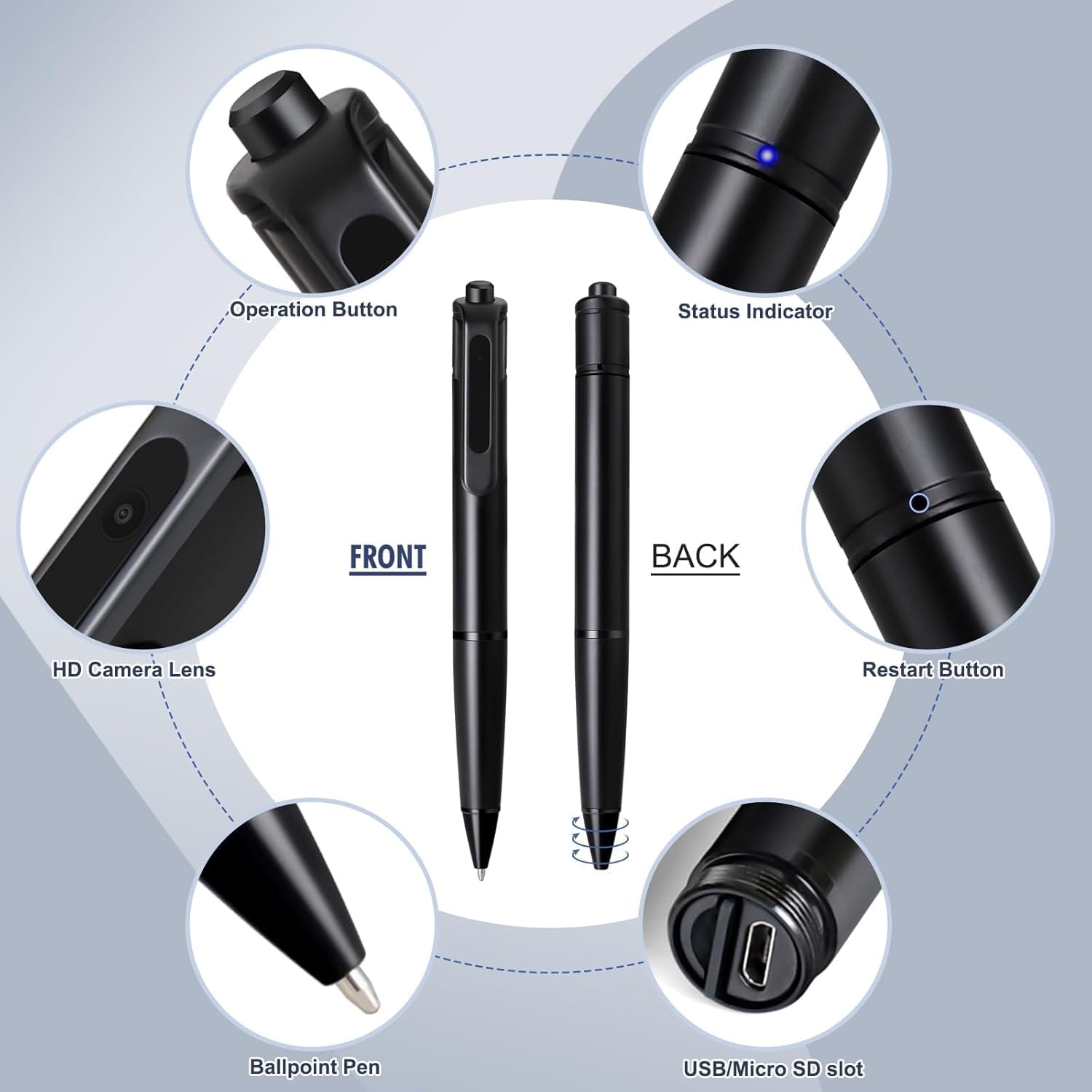 - Discrete Design: Fully functional pen body hides the tiny lens for covert recording.